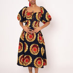 Sade Ankara Print Midi Dress - Black Gold Red
