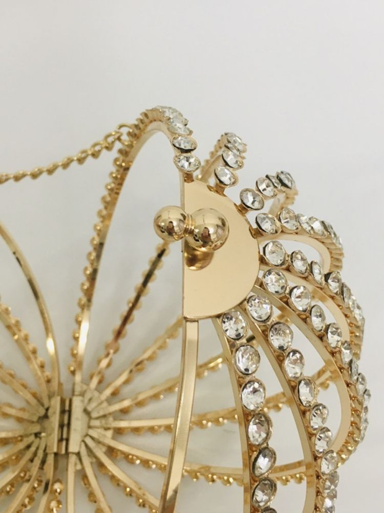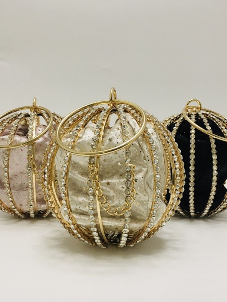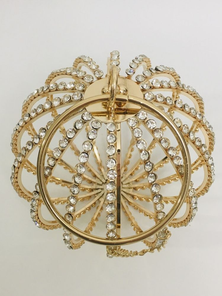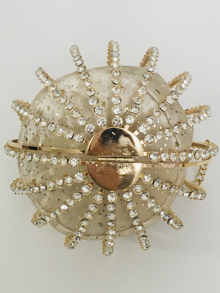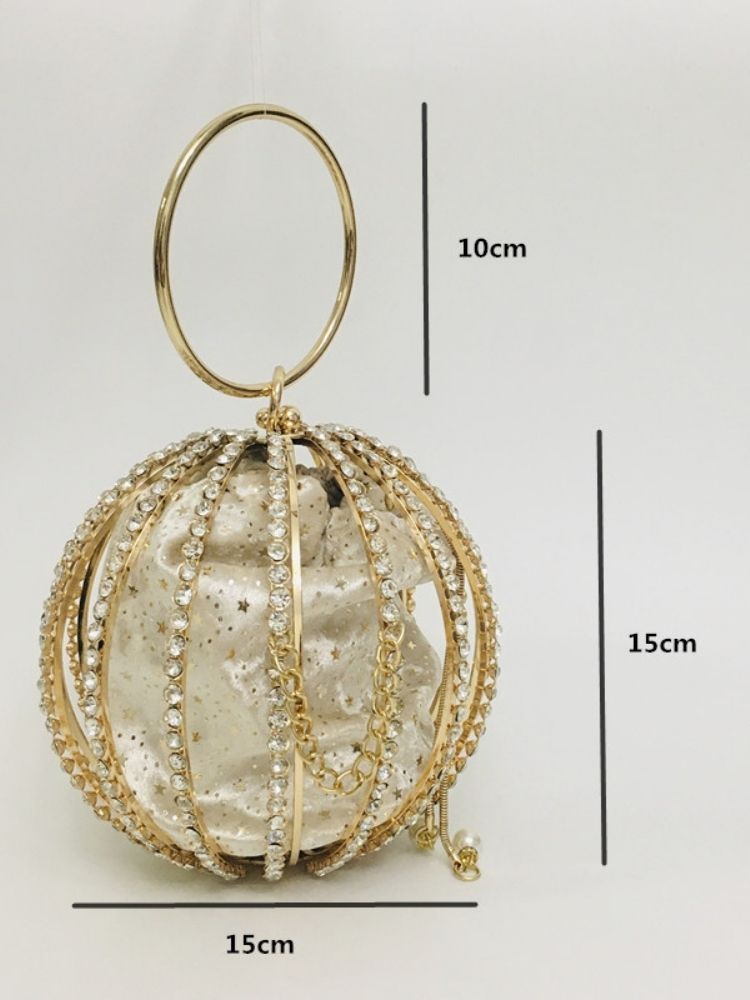 The Adébola Bag is a masterpiece of eveningwear accessory design—where opulence meets artistry. Crafted from alloy and encrusted with shimmering rhinestones, its spherical silhouette captures light from every angle, ensuring you remain the center of attention.