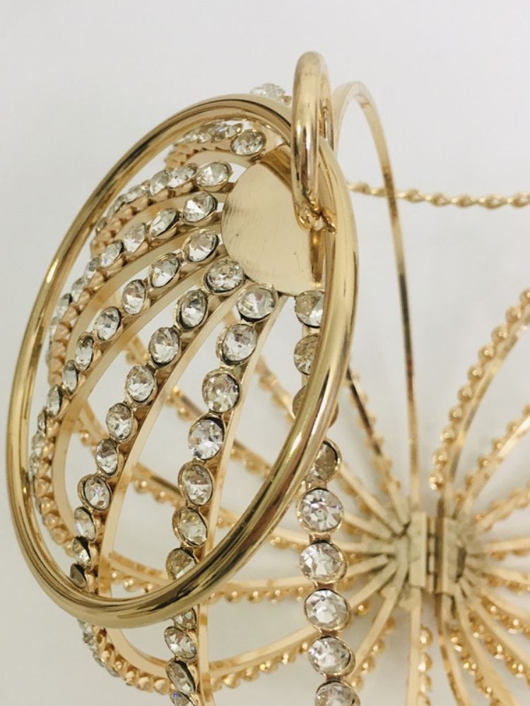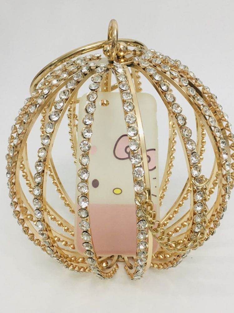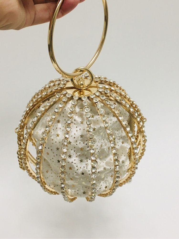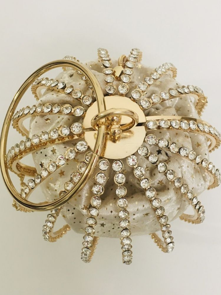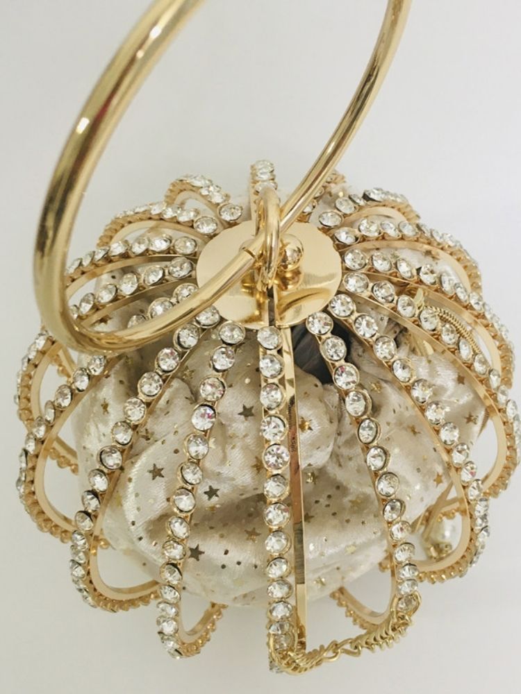 The Adébola Bag is a masterpiece of eveningwear accessory design—where opulence meets artistry. Crafted from alloy and encrusted with shimmering rhinestones, its spherical silhouette captures light from every angle, ensuring you remain the center of attention.