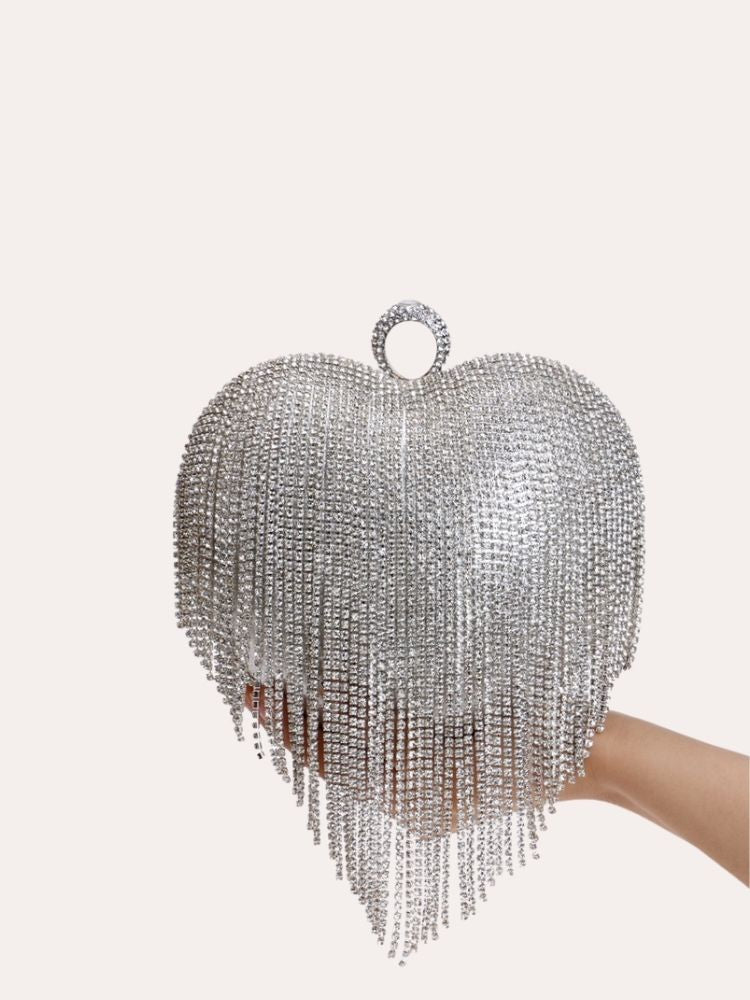 The Ifekemi Heart-Shaped Bag is a celebration of elegance and charm. Crafted from high-quality polyester, this bag boasts a structured heart silhouette that exudes sophistication. The standout feature is its exquisite jeweled tassels, adding a touch of sparkle and movement to your ensemble.
